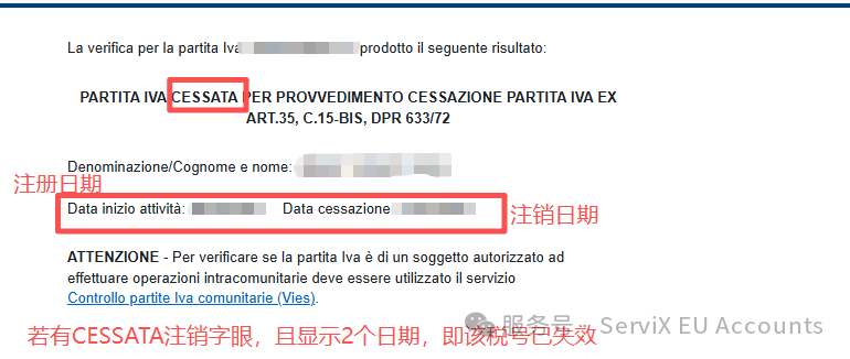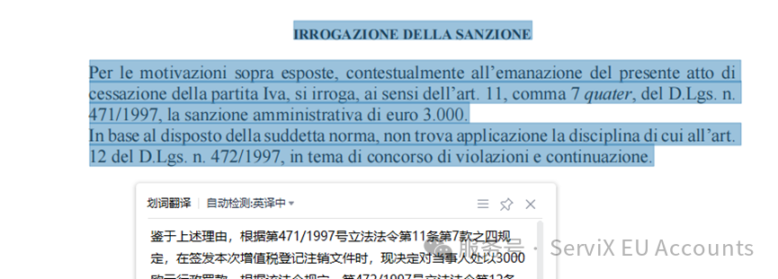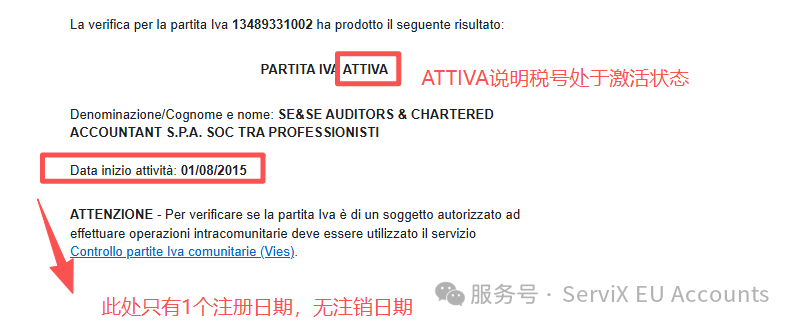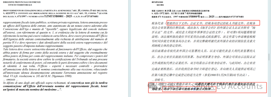意大利税务局(Agenzia delle Entrate)依据 “针对增值税登记相关逃税现象制定预防与打击措施” 的法规,已对该公司作出停业处理,实施强制注销税号、从欧盟VIES数据库除名等严厉处罚。
